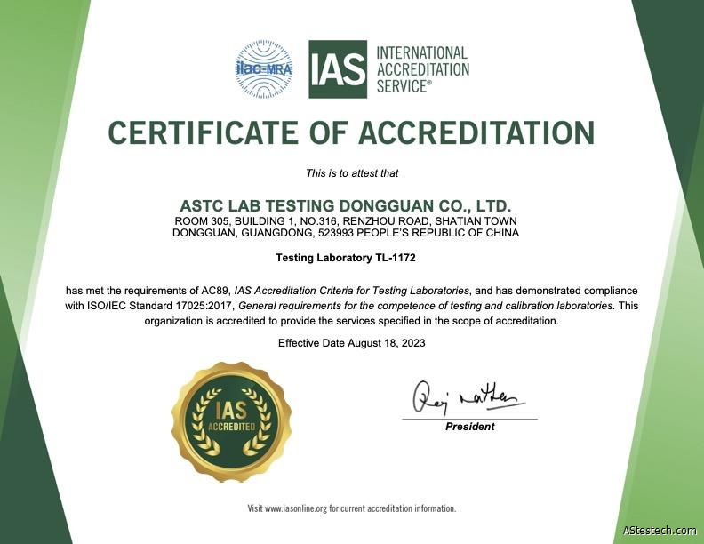 ISO 17025是国际标准化组织(ISO)制定的实验室能力认可标准,它对实验室的技术能力、质量管理体系和技术文件等方面提出了严格的要求。通过ISO 17025资质认可评审意味着ASTC Lab的实验室能力和质量管理体系已经得到权威机构的认可,并符合国际认可标准。